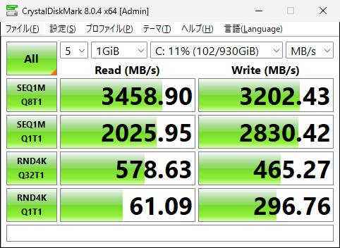 シーケンシャルリードで3458.90MB/s