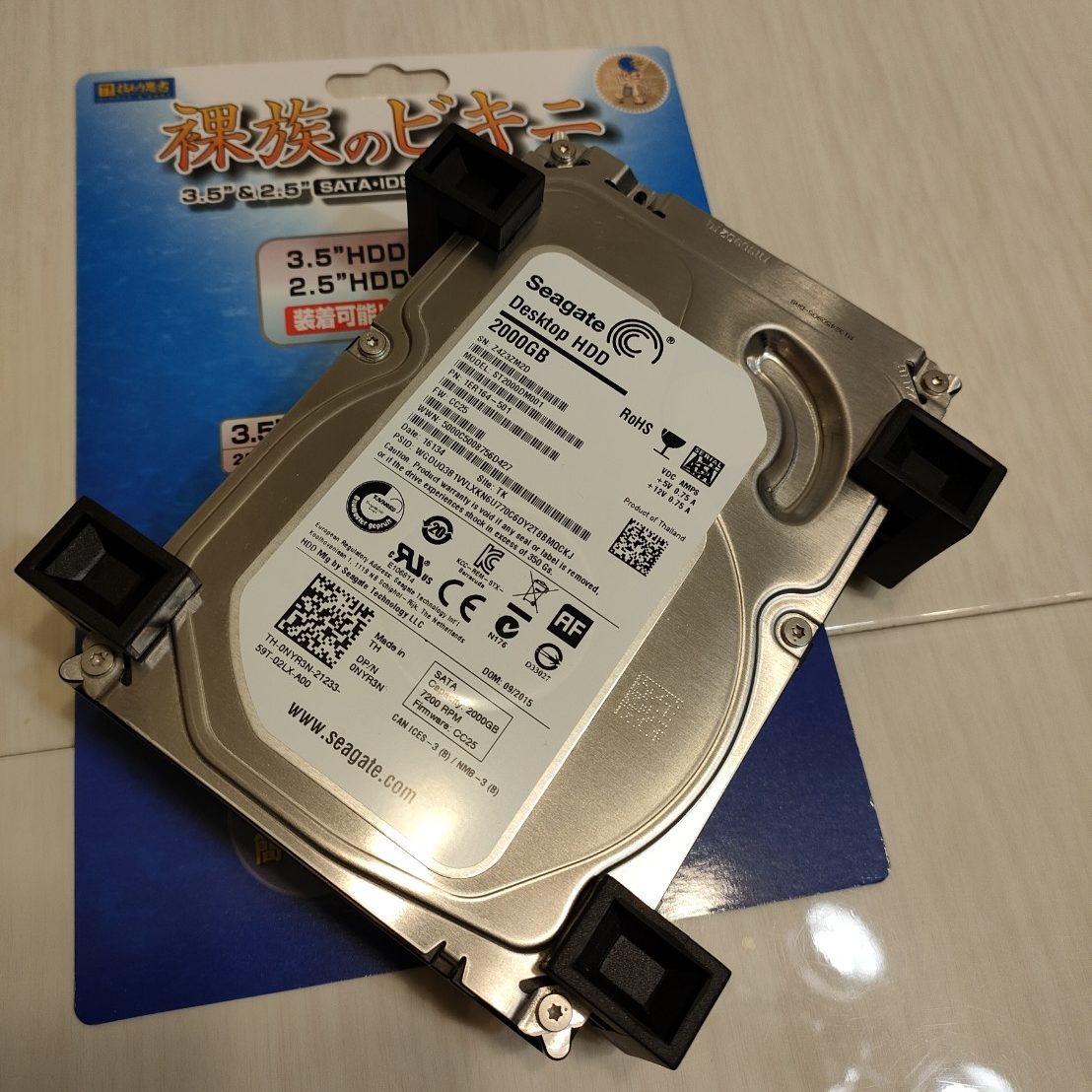 ただ、自分はキャスター付きコロコロ台の上にPCを乗せており、安定性向上のため「裸族のビキニ」というストレージの足を履かせることにしました。