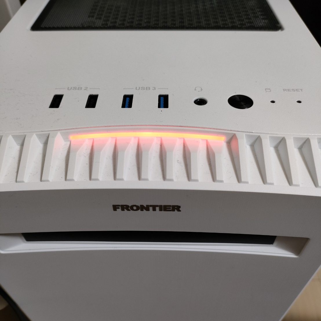 FRONTIERの新GAシリーズはコンパクトなケースながらもATXタイプを搭載、排気・吸気も考えられており、無駄のない作りとなっていました。白いケースも部屋に馴染みます。